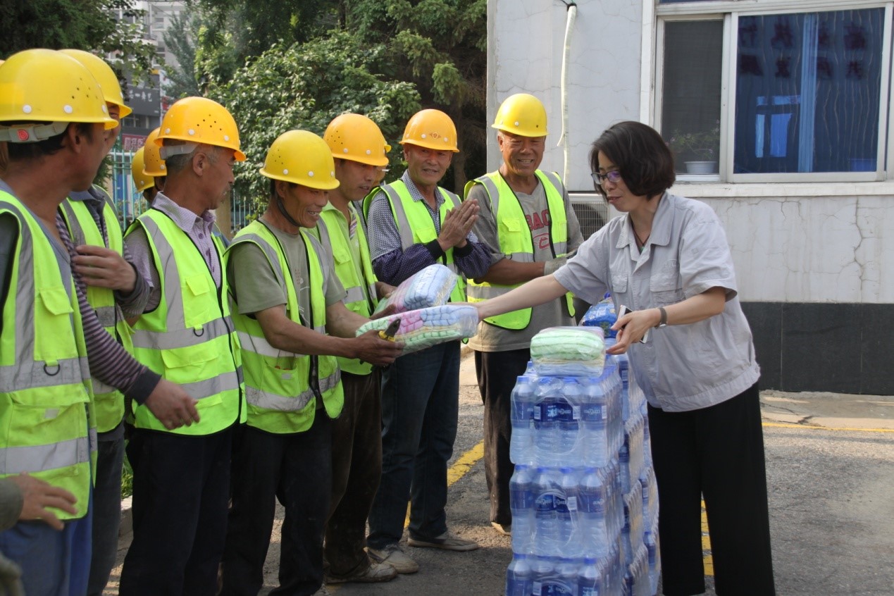 2018612日下午,沈陽防銹向皇姑區(qū)環(huán)衛(wèi)及市水務(wù)集團(tuán)一線工作者們進(jìn)行慰問,并捐贈(zèng)了一批礦泉水、毛巾和工作手套。沈陽防銹總經(jīng)理劉艷霞、皇姑區(qū)首府城管一所所長周雪梅、副所長白冰、市水務(wù)集團(tuán)施工單位領(lǐng)導(dǎo)共同參加了慰問捐贈(zèng)活動(dòng)。